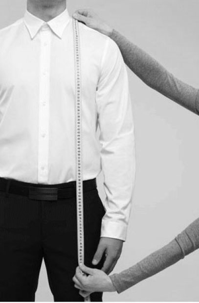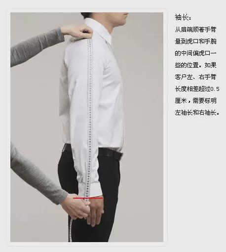 从肩颈点向下垂量至大拇指尖部位,手臂偏长或者偏短的