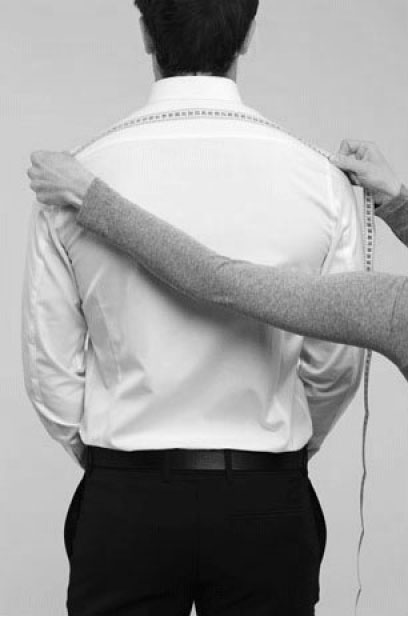 从左到右的两个肩端点,平水测量。可根据所穿着的衣服