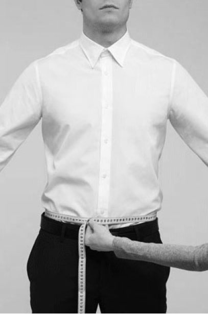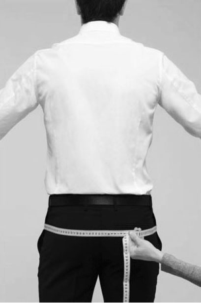 从腰带上沿量一周,经软尺平贴能转动为宜,一般体型偏瘦的