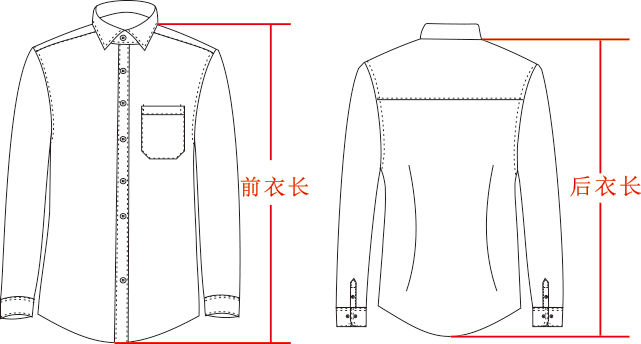 衬衫衣长是从肩斜线最低点与袖子拼接缝为顶点,向下到袖口底部的长度。