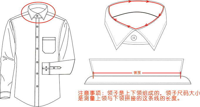 首先衬衫测量的是领围,所谓的领围就是领子的长度。