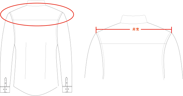 衬衫肩的宽度测量相对简单,扣好纽扣向下平铺,测量肩头和袖山相拼接的缝位处,直线测量即可。